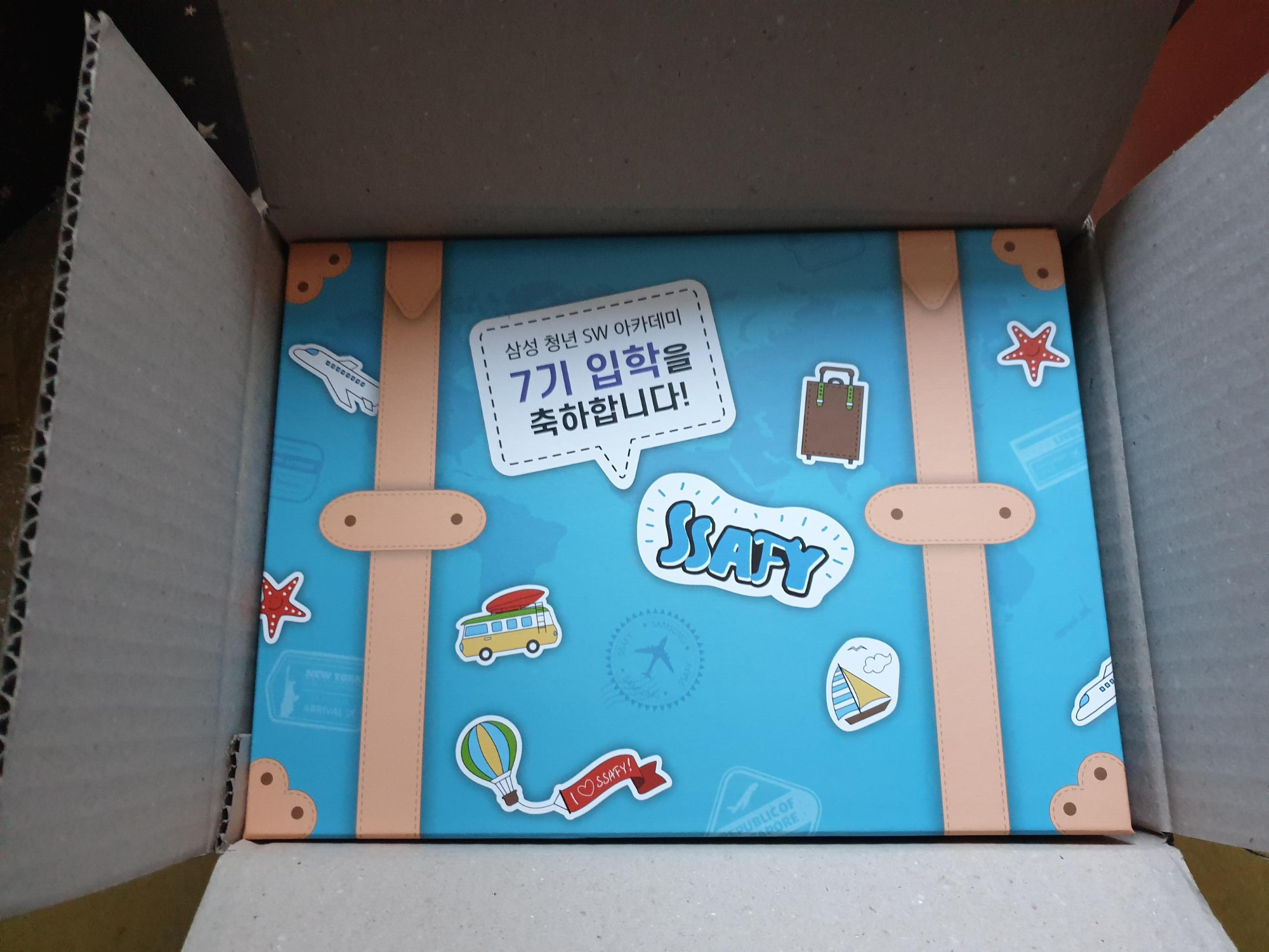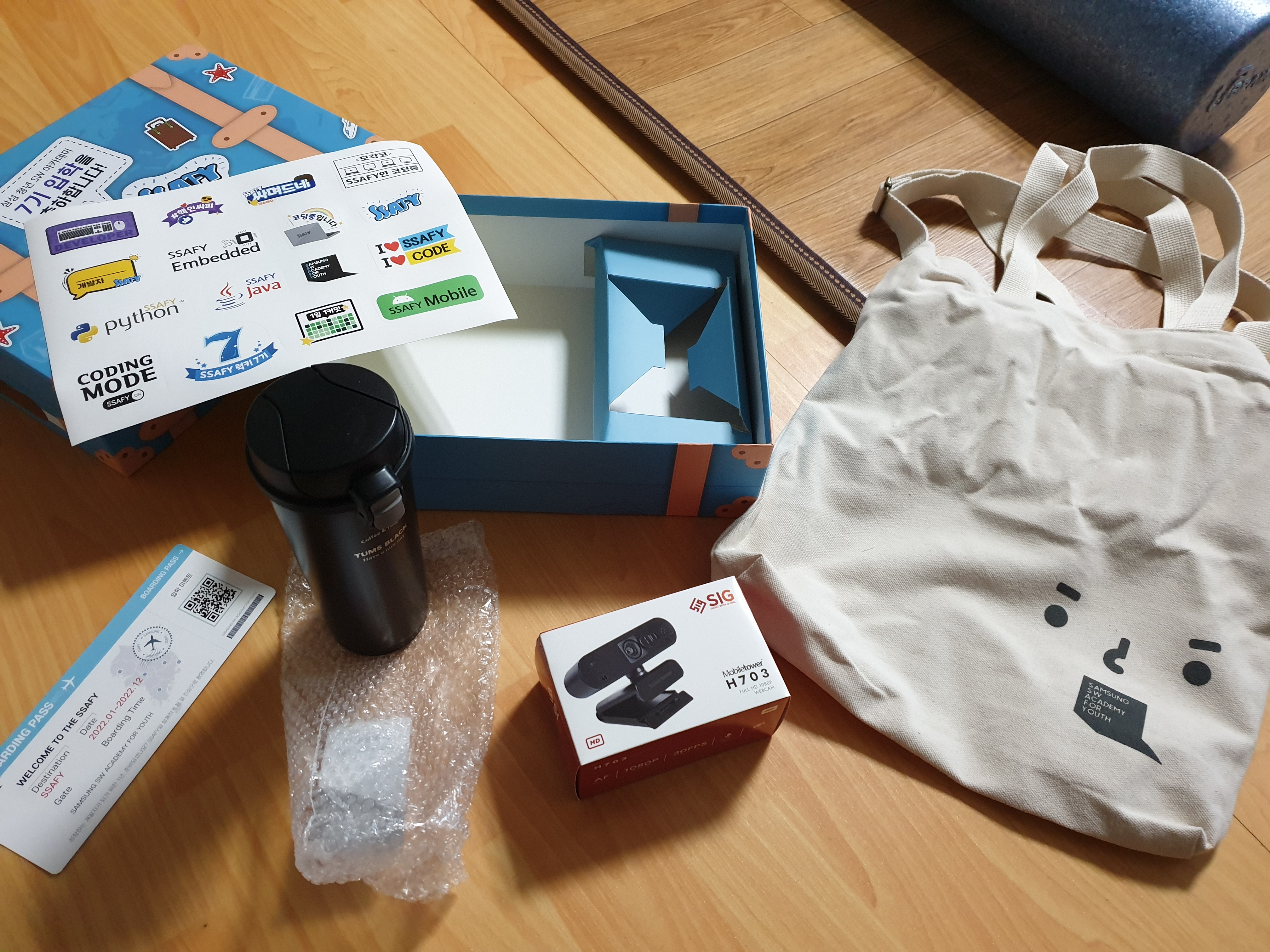 박스가 튼튼한 것이 귀엽다. 싸피라는 여행을 떠나기 위한 캐리어를 배달해준 듯?