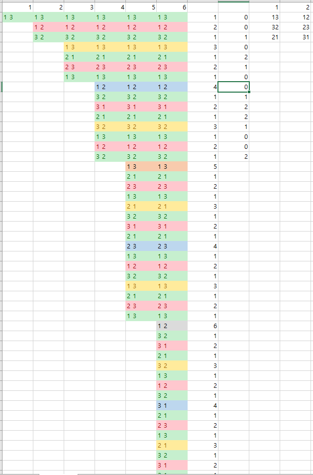 아래와 같은 깔끔한 생각, 유연한 생각을 하지 못해서 그저 무식하게 다 작성하고 규칙을 찾아보려고 몇시간을 용썼다 아주 홀수 입력시는 13 32 21 짝수는 12 23 31 와 같은 규칙... 이마저도 문제 조건과 비교하니까 틀렸다.