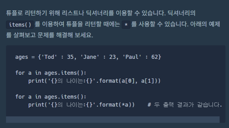 dictionary도 keys()랑 values(), items()를 잘 쓰자
