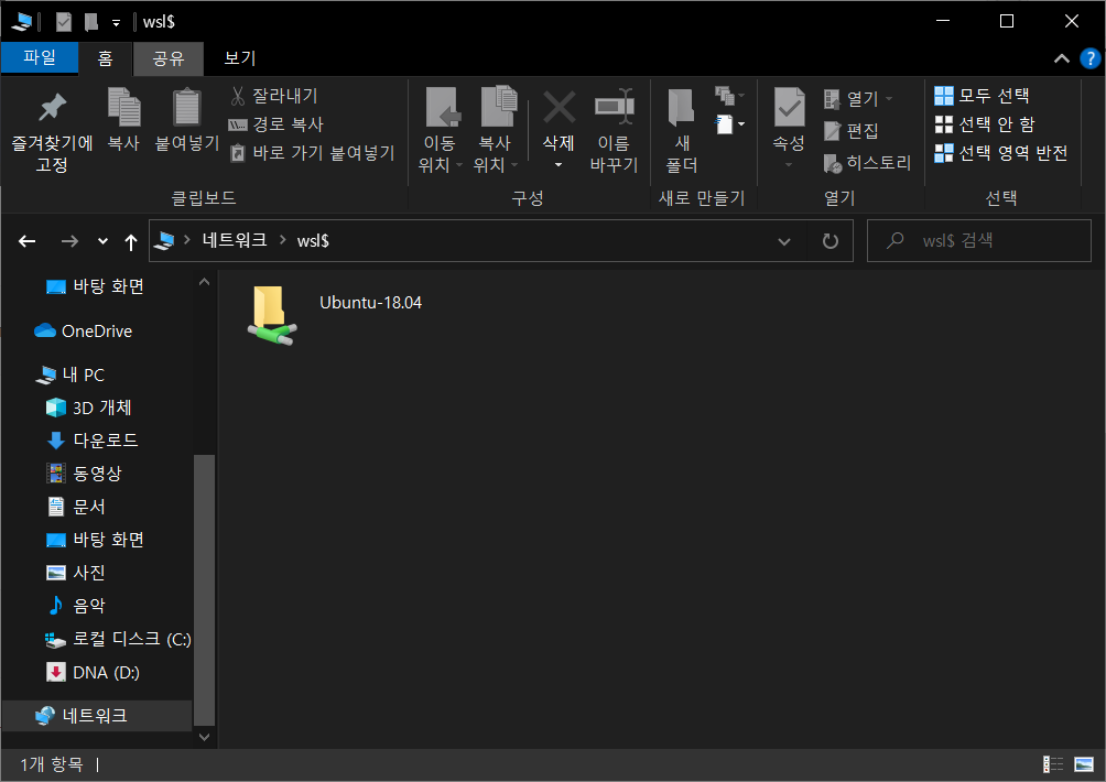 wsl$ 상위 폴더인 최상위 폴더는 접근할 수 없는지 네트워크라고 불리우는 폴더는 접근할 수 없었다.